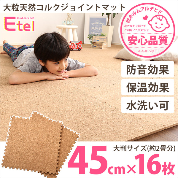 - コルクマット/ジョイントマット 【大判45cm×16枚セット】 サイドパーツ付き 洗える 防音 保温 『Etle-エーテル-』